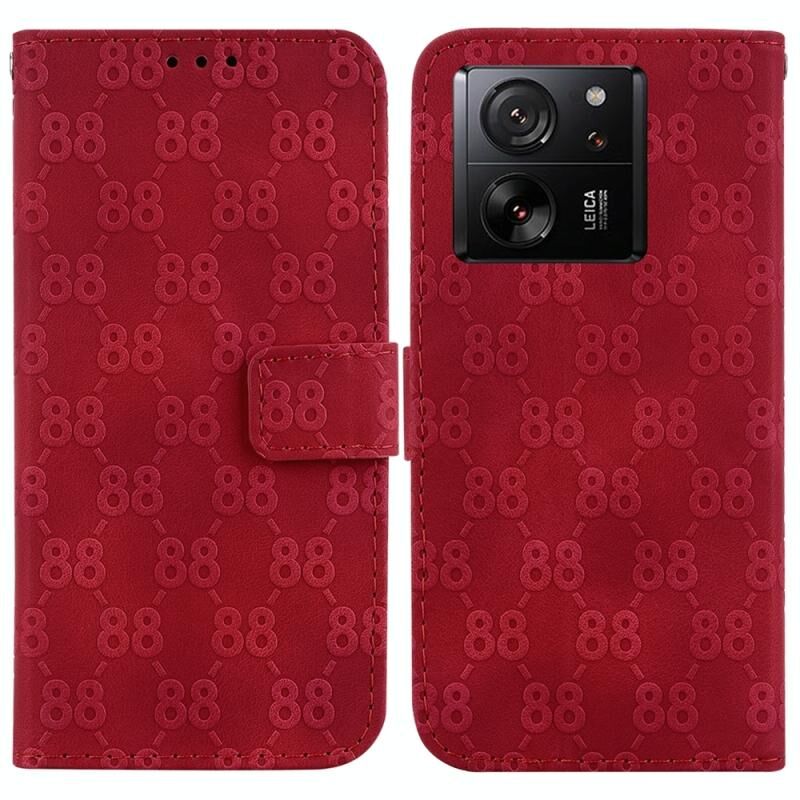 Θήκη δερμάτινη με ανάγλυφο σχέδιο για Xiaomi 13T / 13T Pro / Redmi K60 Ultra (Κόκκινο)