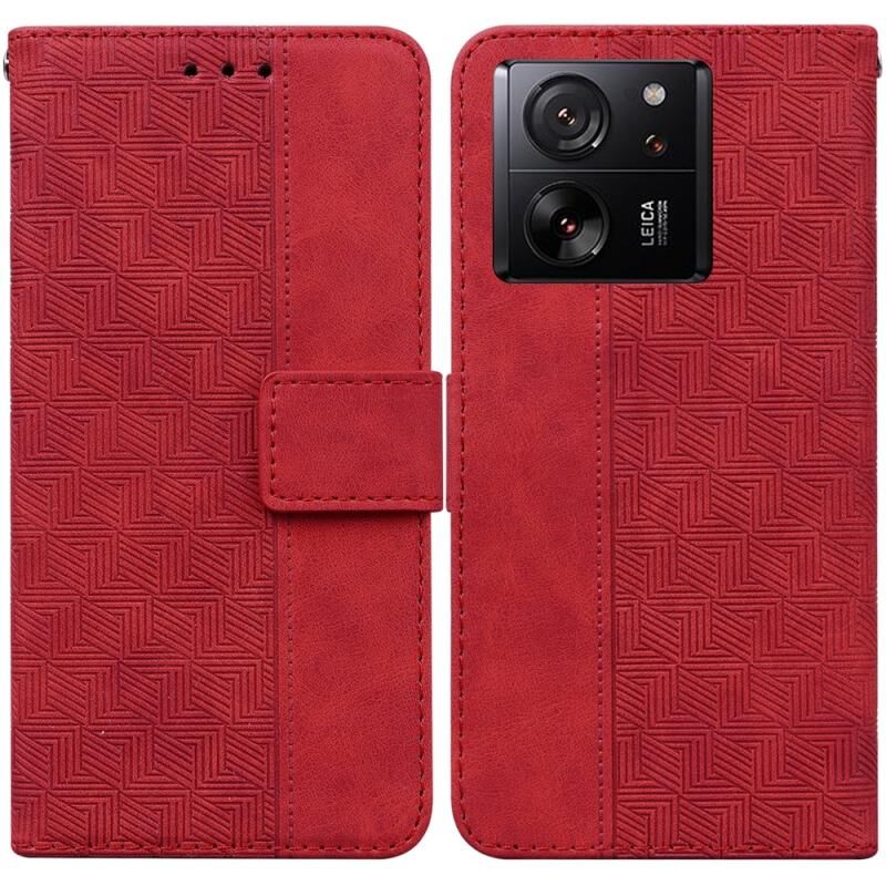 Για Xiaomi 13T / 13T Pro / Redmi K60 Ultra γεωμετρική ανάγλυφη δερμάτινη θήκη τηλεφώνου (κόκκινο)