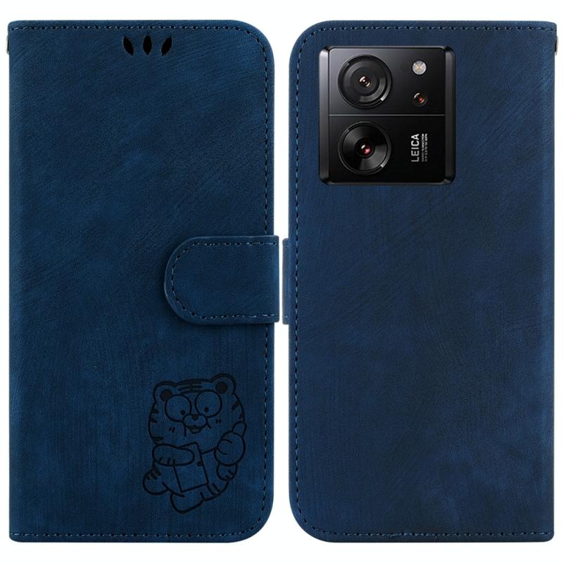 Θήκη δερμάτινη με ανάγλυφο Little Tiger για Xiaomi 13T / 13T Pro / Redmi K60 Ultra (Σκούρο Μπλε)