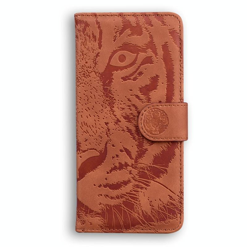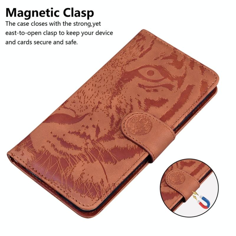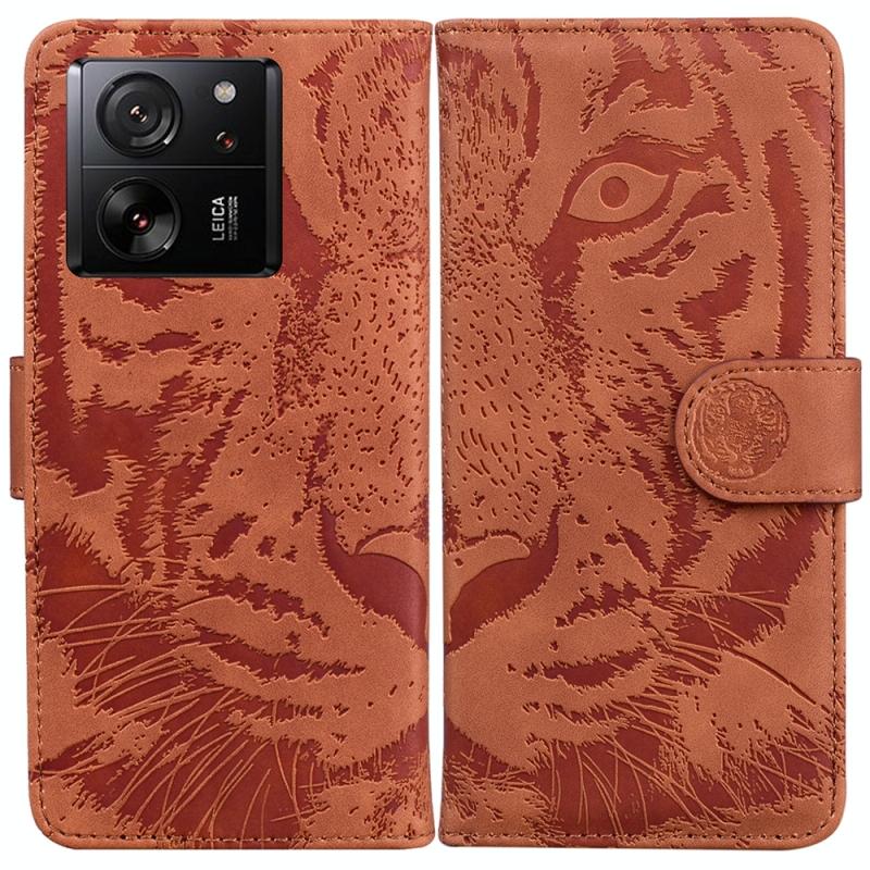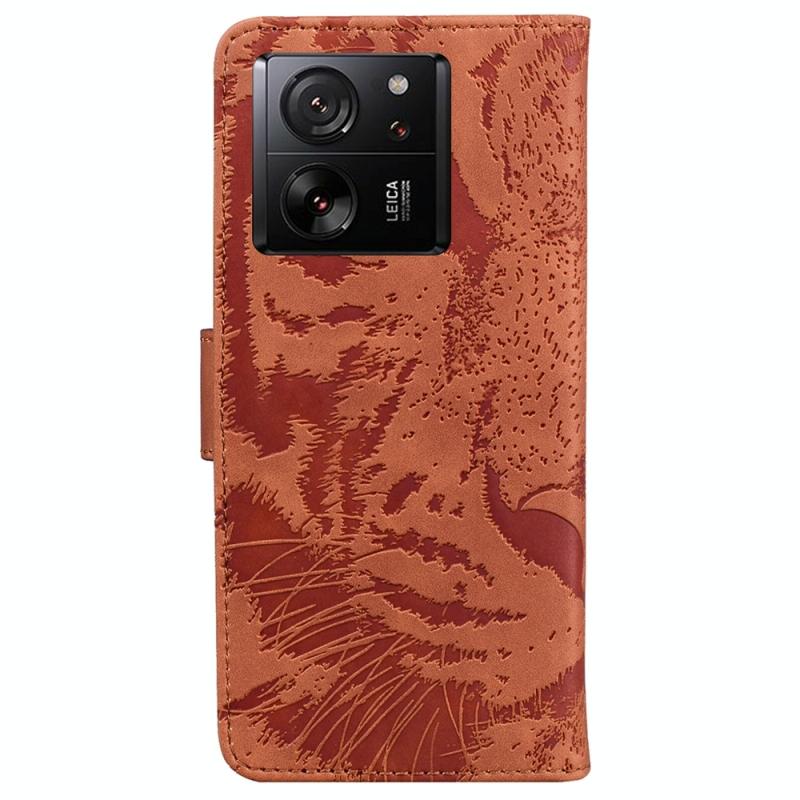 Θήκη δερμάτινη με ανάγλυφο σχέδιο τίγρης για Xiaomi 13T / 13T Pro / Redmi K60 Ultra (Καφέ)