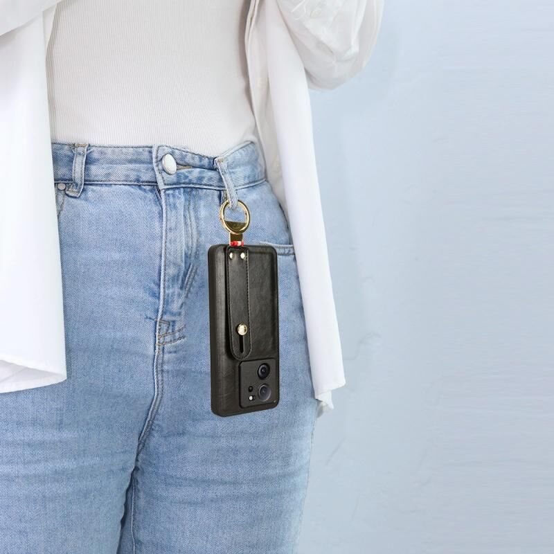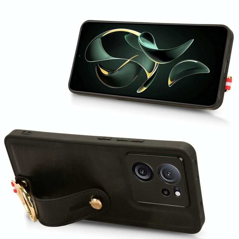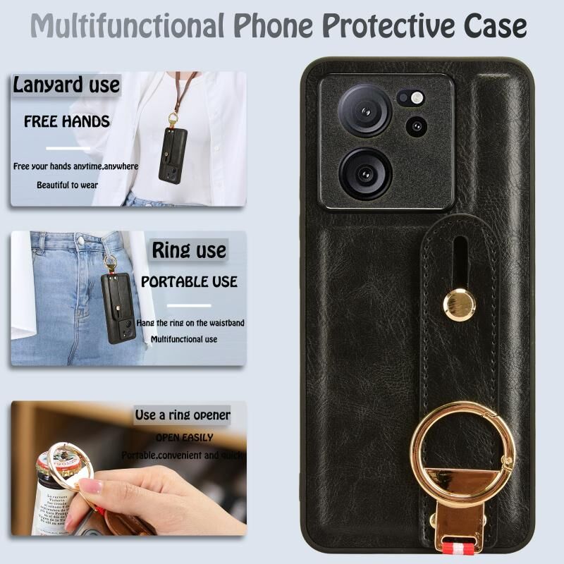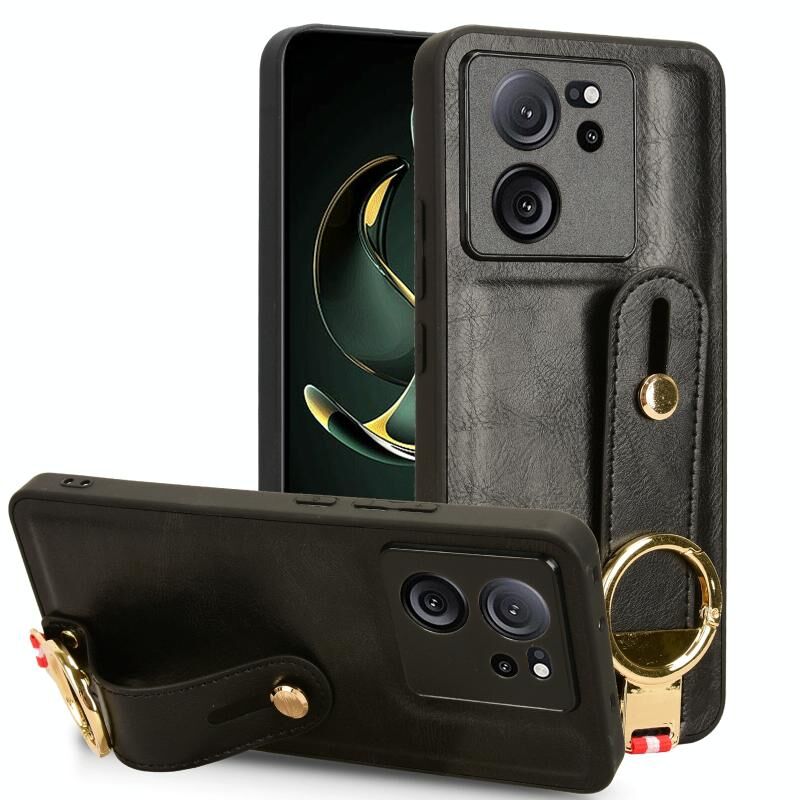 Για Xiaomi 13T / 13T Pro / Redmi K60 Ultra Wristband δερμάτινη πίσω θήκη τηλεφώνου (μαύρο)