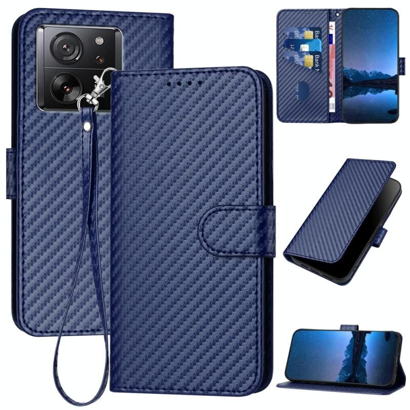 Για Xiaomi 13T/13T Pro/Redmi K60 Ultra YX0070 Carbon Fiber Πόρπη δερμάτινη θήκη τηλεφώνου με κορδόνι (Ρουά Μπλε)
