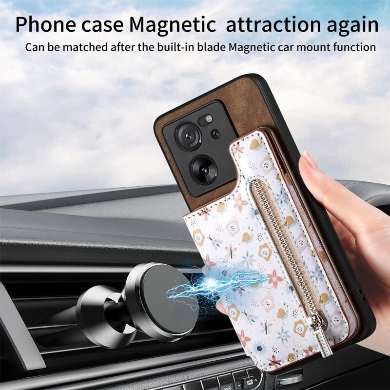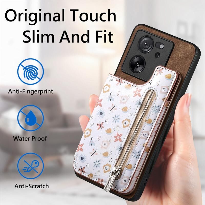 Για Xiaomi 13T / 13T Pro Ρετρό ζωγραφισμένο φερμουάρ πορτοφόλι πίσω υπόθεση τηλεφώνου (καφέ)