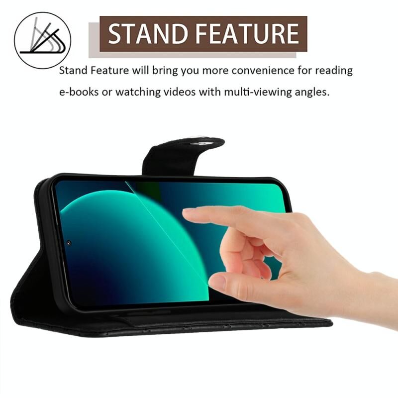 Για Xiaomi 13T / 13T Pro Rhombic Texture Flip υπόθεση τηλεφώνου δέρμα με μακρύ κορδόνι (Μαύρο)