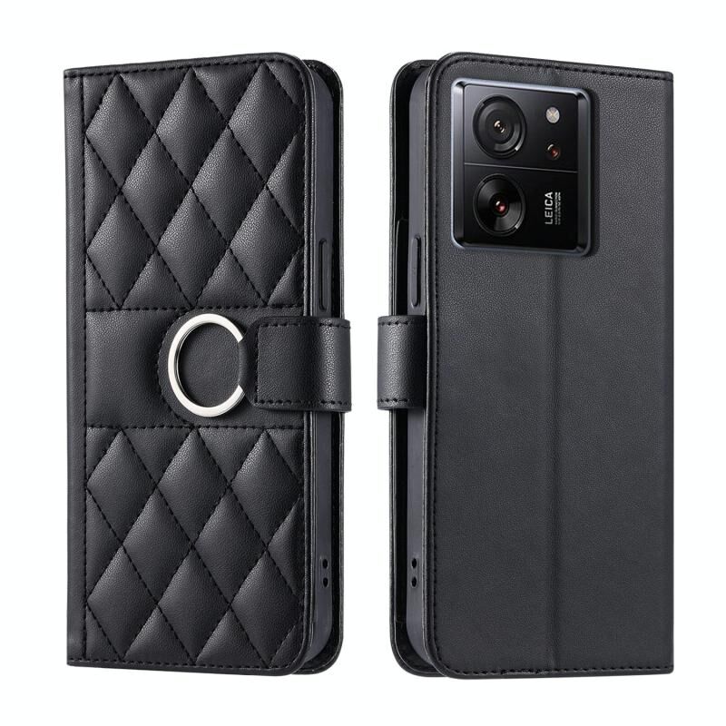 Για Xiaomi 13T / 13T Pro δαχτυλίδι πόρπη Rhombic δέρμα τηλέφωνο υπόθεση (μαύρο)