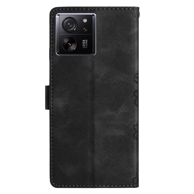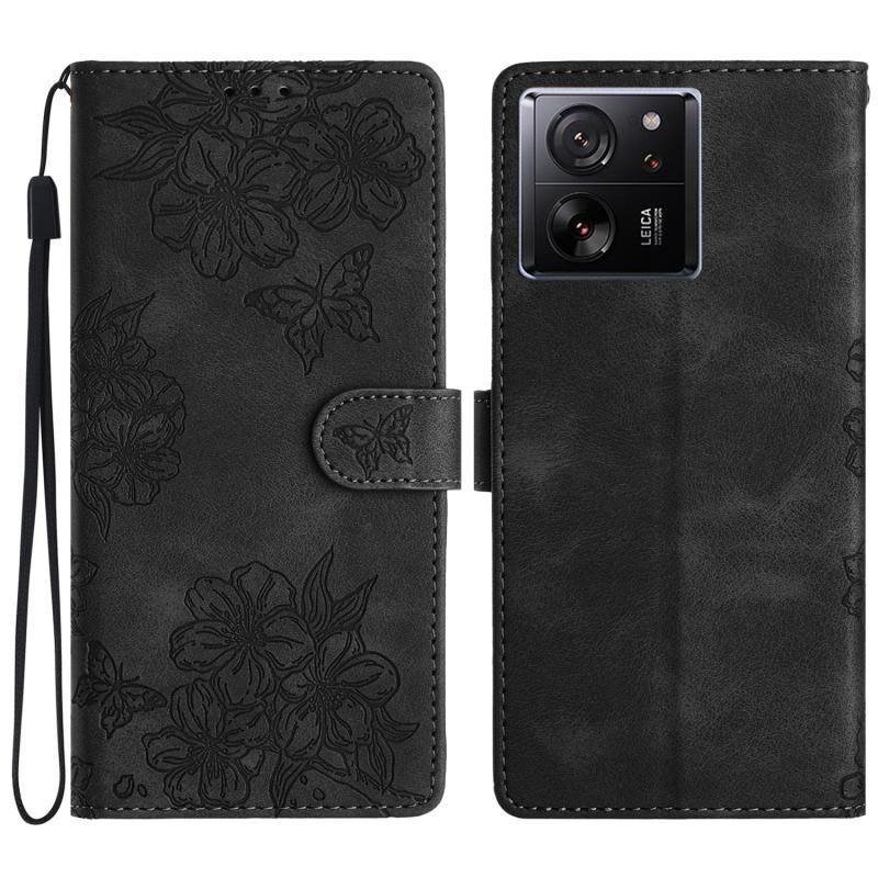 Θήκη τηλεφώνου Xiaomi 13T 5G με ανάγλυφο PU, αίσθηση δέρματος πεταλούδας κερασιάς (Κόκκινο)