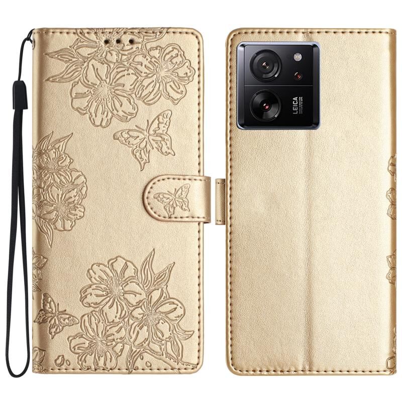 Θήκη τηλεφώνου Xiaomi 13T 5G με ανάγλυφο PU, αίσθηση δέρματος πεταλούδας κερασιάς (Κόκκινο)