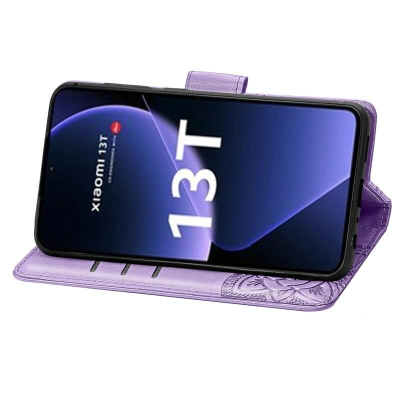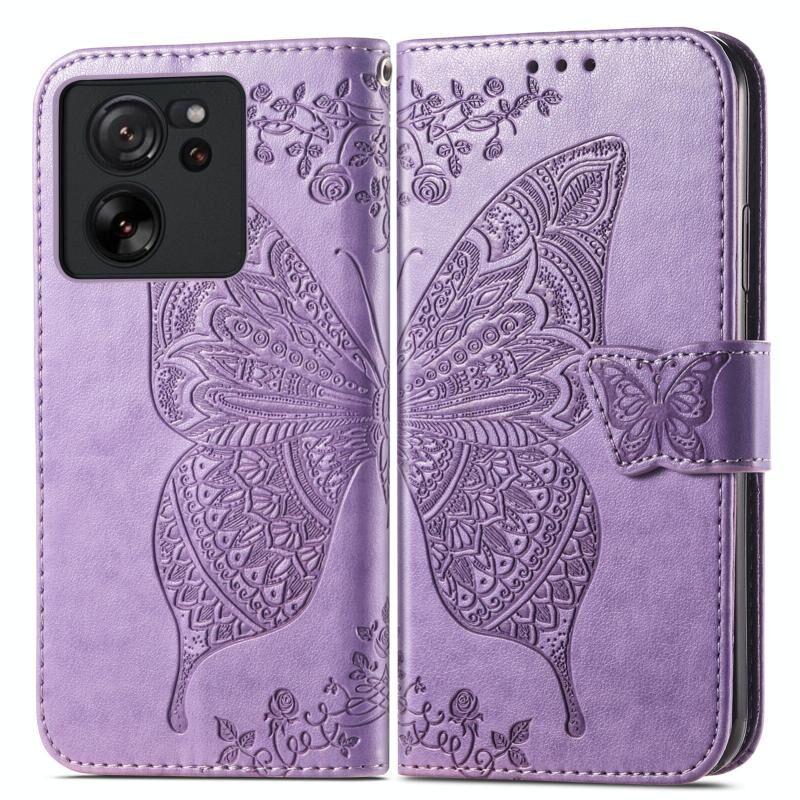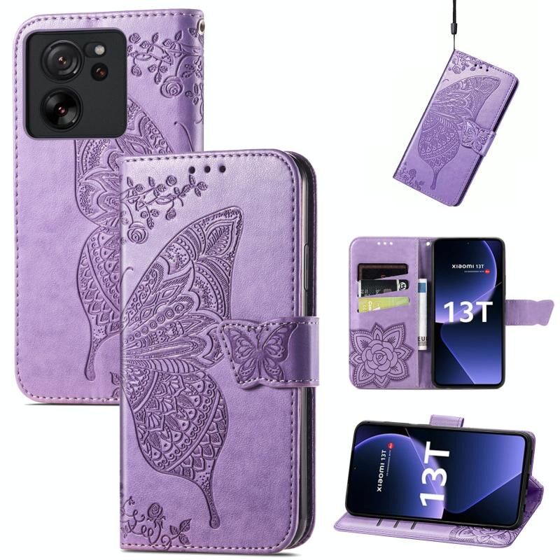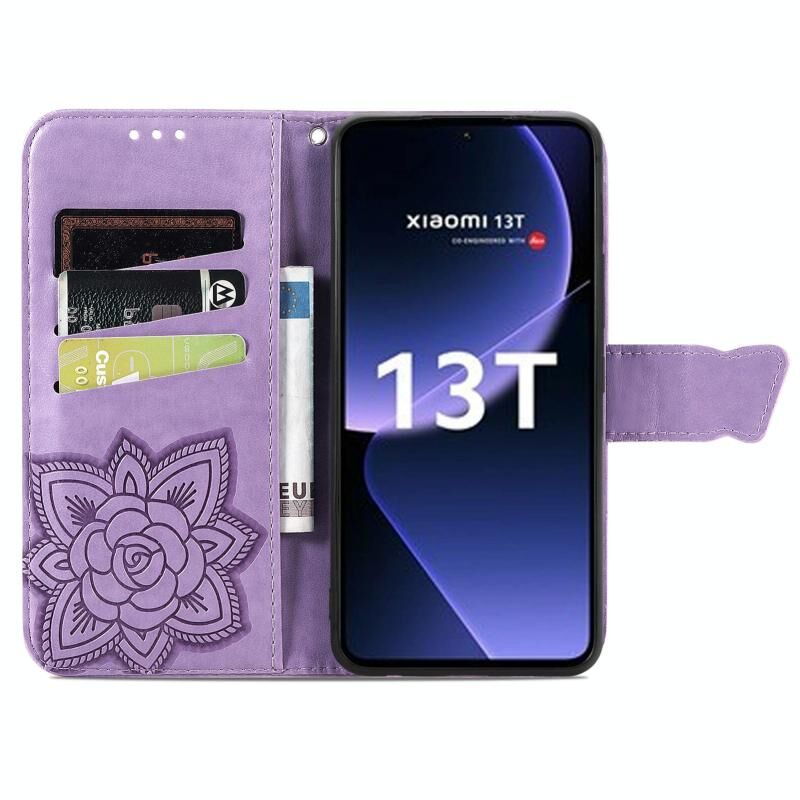 Θήκη τηλεφώνου δερμάτινη ανάγλυφη με σχέδιο πεταλούδας και λουλουδιών για Xiaomi 13T (Λεβάντα)