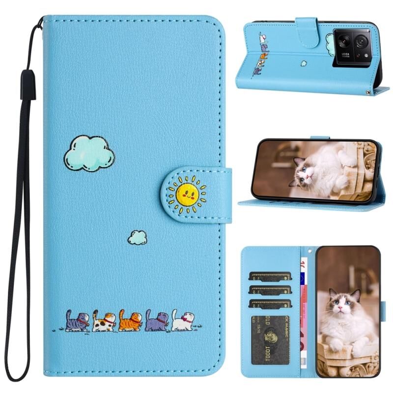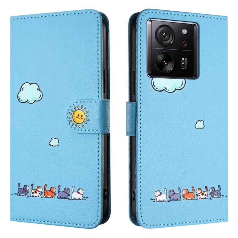 Θήκη τηλεφώνου από δέρμα με σχέδια χαριτωμένων γατών για Xiaomi 13T (Κόκκινο)