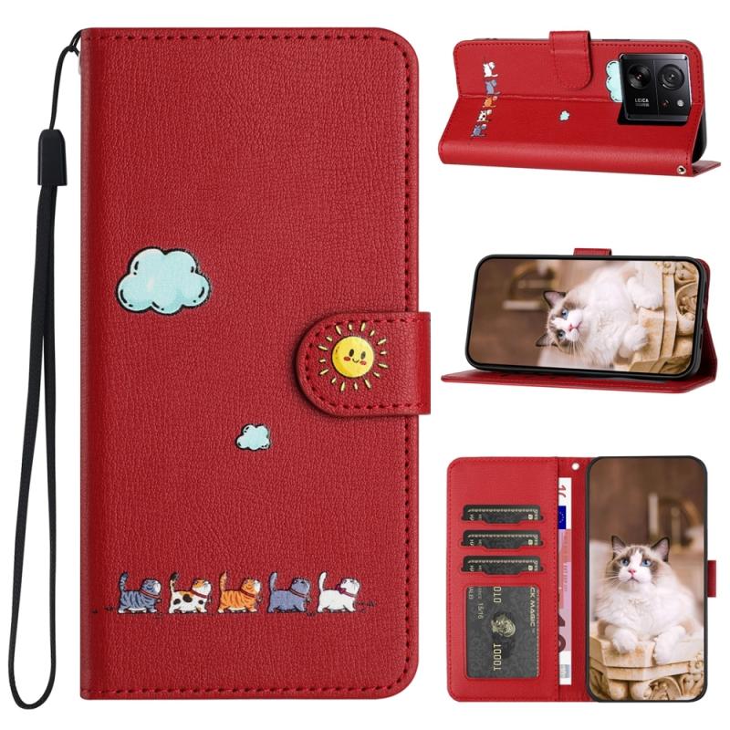 For Xiaomi 13T Cartoon Cats Leather Phone Case(Red)
