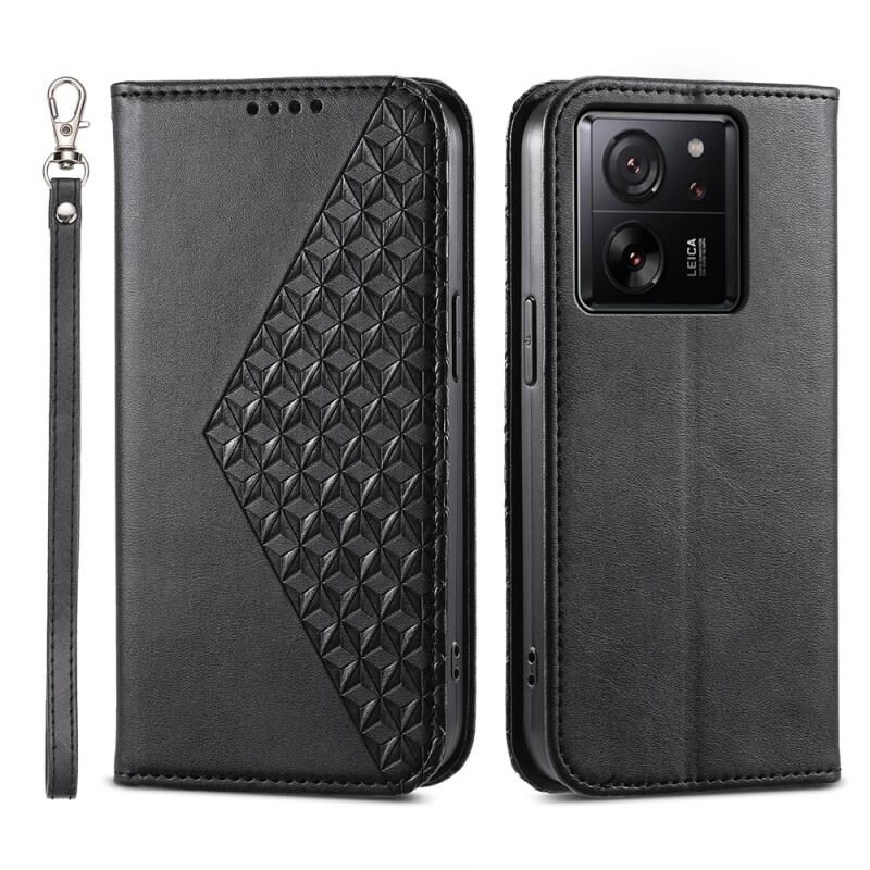 Για Xiaomi 13T Cubic Grid Calf Texture μαγνητική υπόθεση τηλεφώνου από δέρμα (μαύρο)