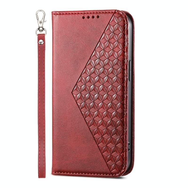 Για Xiaomi 13T Cubic Grid Calf Texture μαγνητική υπόθεση τηλεφώνου από δέρμα (κόκκινο)