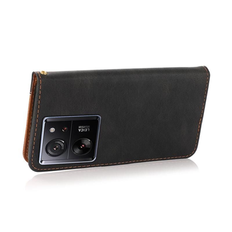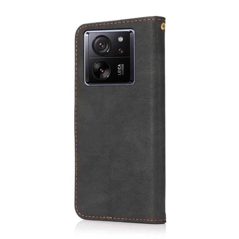 Για Xiaomi 13T Διπλό χρώμα ραφή δερμάτινη θήκη τηλεφώνου (Μαύρο καφέ)
