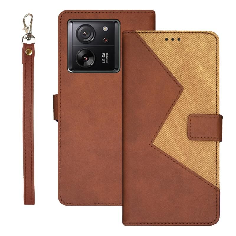 Για Xiaomi 13T idewei Δερμάτινη Θήκη Τηλεφώνου Διχρωμίας (Μπλε) (Καφέ)