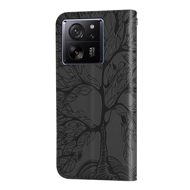 Για Xiaomi 13T Life Tree ανάγλυφο μοτίβο δερμάτινη θήκη τηλεφώνου (μαύρο)