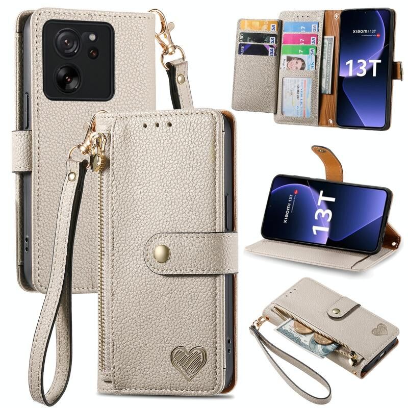 Για Xiaomi 13T αγάπη φερμουάρ φερμουάρ δερμάτινη θήκη τηλεφώνου (λευκό)