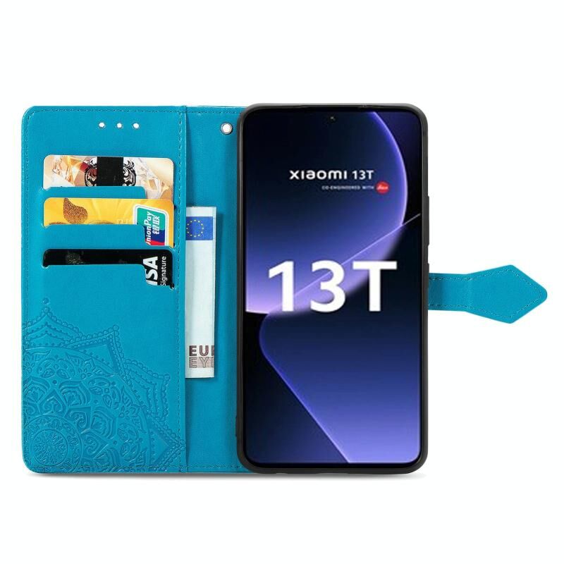 Για Xiaomi 13T Mandala λουλούδι ανάγλυφο δερμάτινη θήκη τηλεφώνου (μπλε)