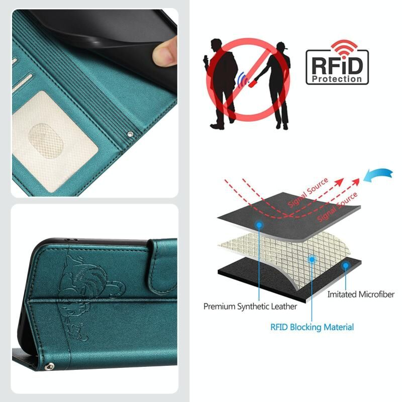 Για Xiaomi 13T Pro 5G Γάτα & Ποντίκι, Δερμάτινη Θήκη με Λουρί Καρπού (Πράσινο Παγωνιού)