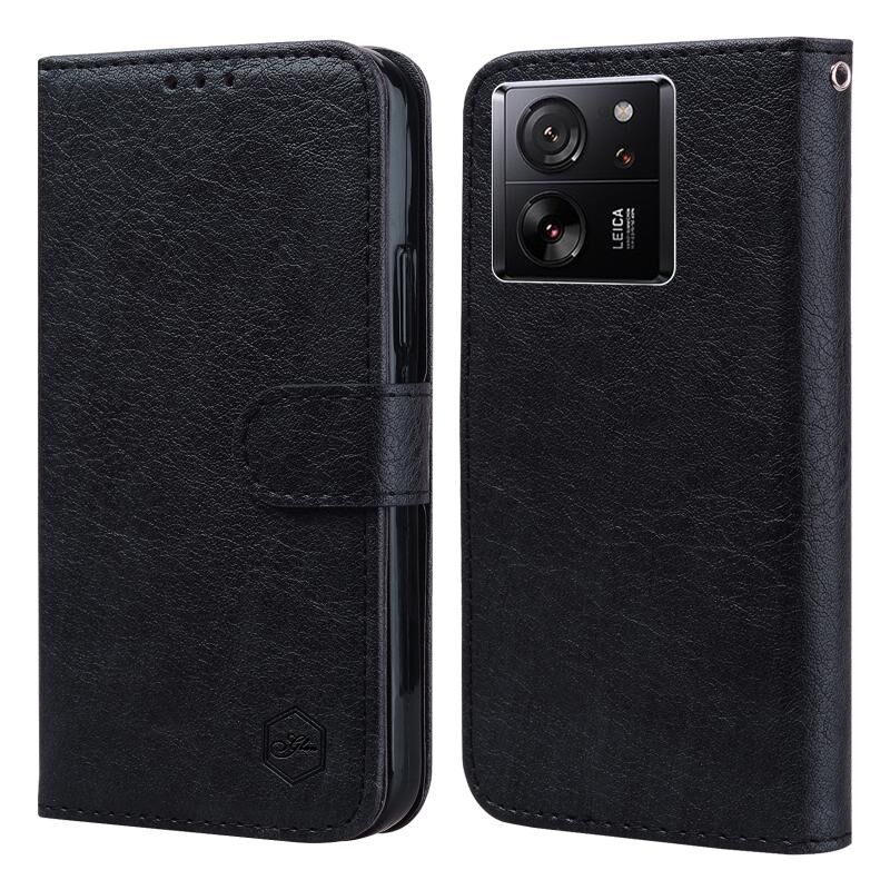 Θήκη κινητού τηλεφώνου Xiaomi 13T Pro με υφή δέρματος λαδιού και PU + TPU (Μαύρο)
