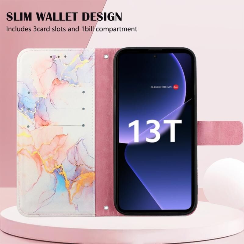 Για Xiaomi 13T PT003 Μαρμάρινο μοτίβο Flip δερμάτινη θήκη τηλεφώνου (Galaxy Marble White LS004)