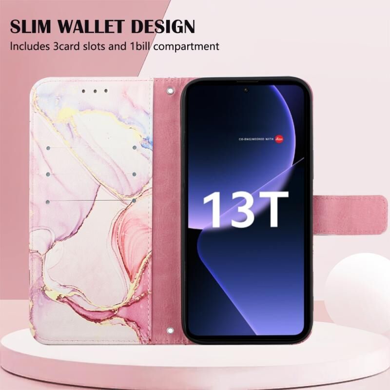 Για Xiaomi 13T PT003 Μαρμάρινο μοτίβο Flip δέρμα τηλέφωνο υπόθεση (Rose Gold LS005)