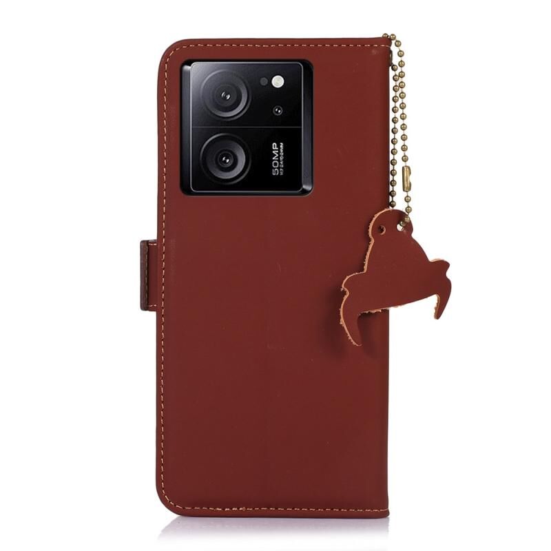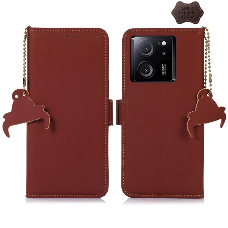 Θήκη τηλεφώνου από γνήσιο δέρμα με μαγνητικό κλείσιμο RFID για Xiaomi 13T / Redmi K60 Ultra (Καφές)