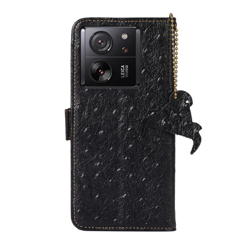 For Xiaomi 13T/Redmi K60 Ultra Ostrich Pattern Genuine Leather RFID Phone Case(Black)