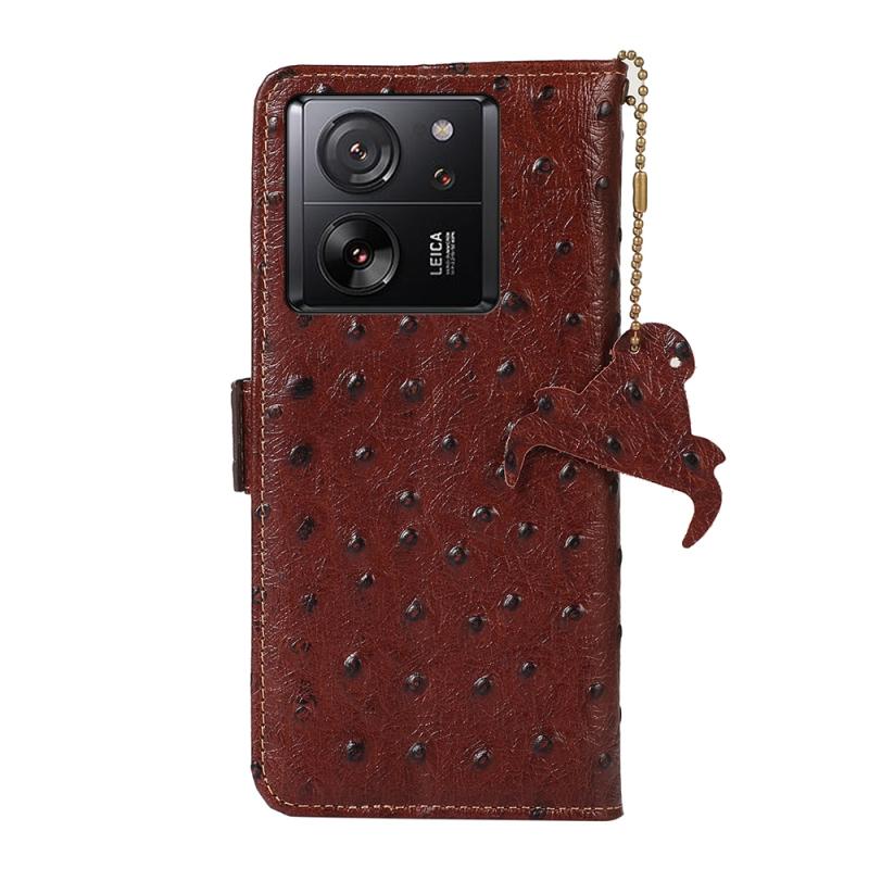 For Xiaomi 13T/Redmi K60 Ultra Ostrich Pattern Genuine Leather RFID Phone Case(Coffee)