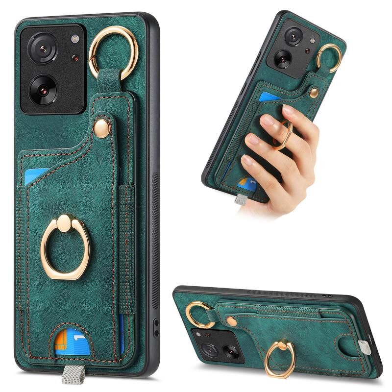 Για Xiaomi 13T Ρετρό δέρμα αίσθηση δαχτυλίδι κάρτα τσάντα υπόθεση τηλεφώνου με Hang Loop (πράσινο)