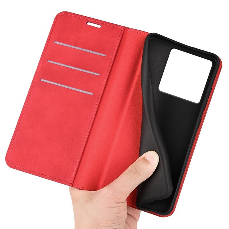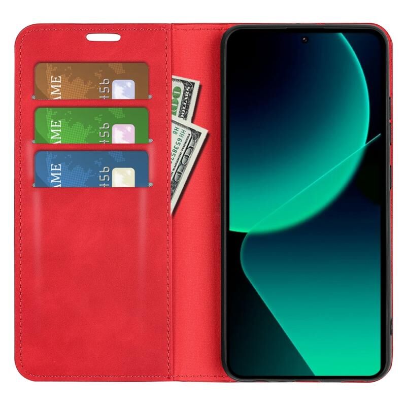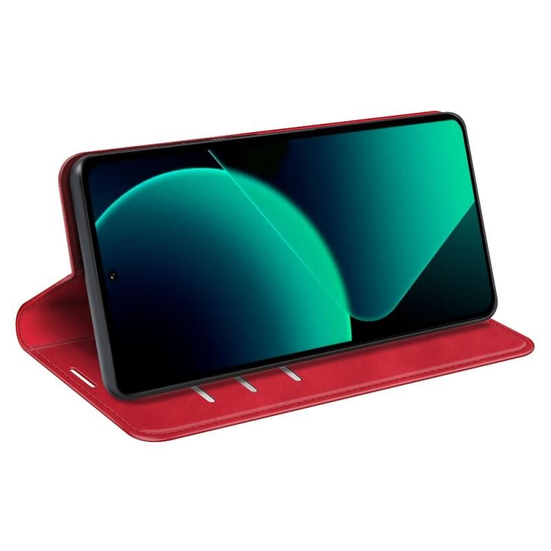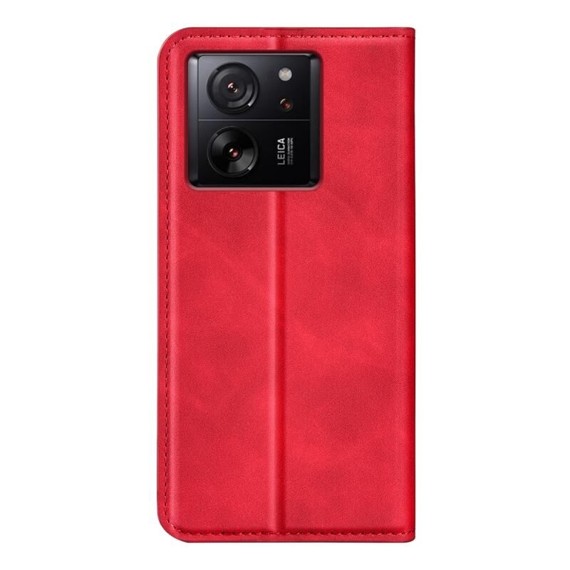 Θήκη τηλεφώνου Xiaomi 13T με μαγνητική απορρόφηση και δερμάτινη υφή retro (Κόκκινο)