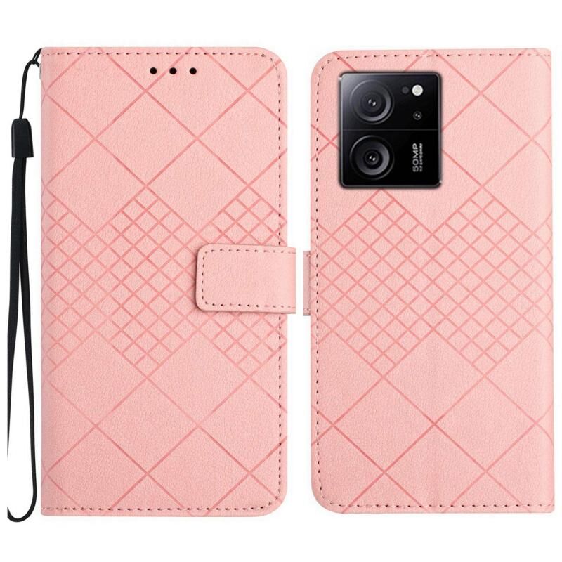 Για Xiaomi 13T Rhombic Grid υφή δερμάτινη θήκη τηλεφώνου (ρόζ)