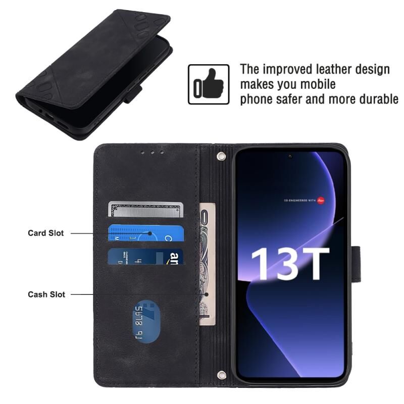 Θήκη τηλεφώνου από δέρμα με ανάγλυφη υφή για Xiaomi 13T (Ανοιχτό Μωβ)