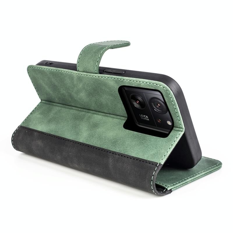 Για Xiaomi 13T Stitching Οριζόντια Flip δέρμα τηλέφωνο υπόθεση (πράσινο)