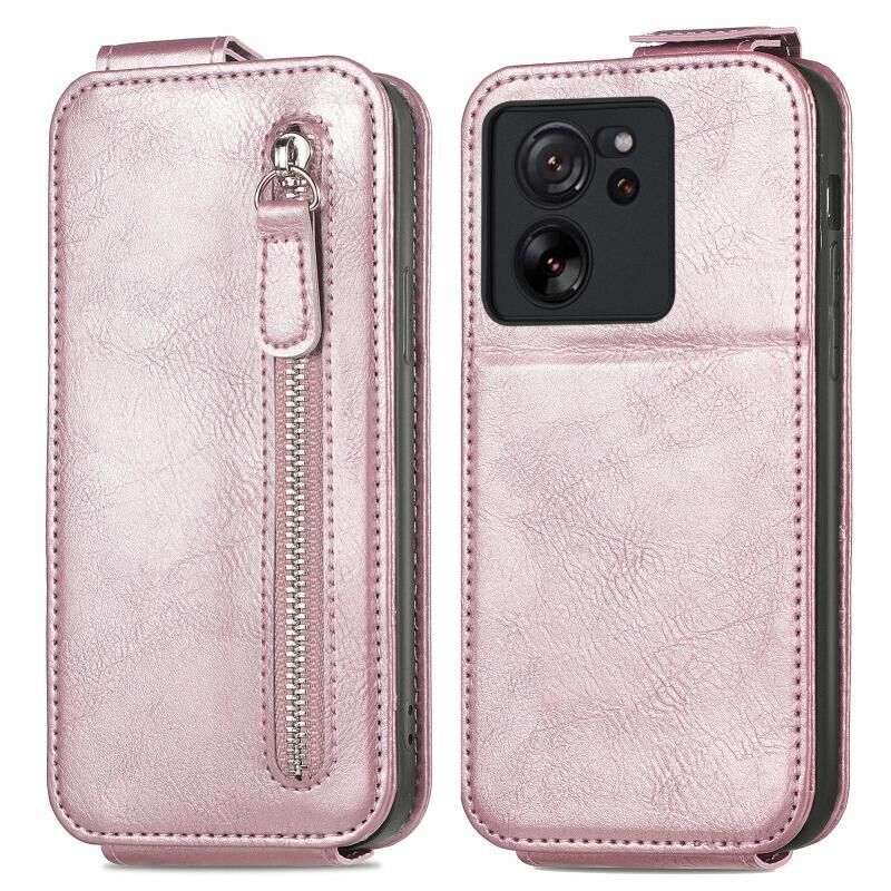 Για Xiaomi 13T φερμουάρ πορτοφόλι κάθετη Flip δέρμα τηλέφωνο υπόθεση (ρόζ)