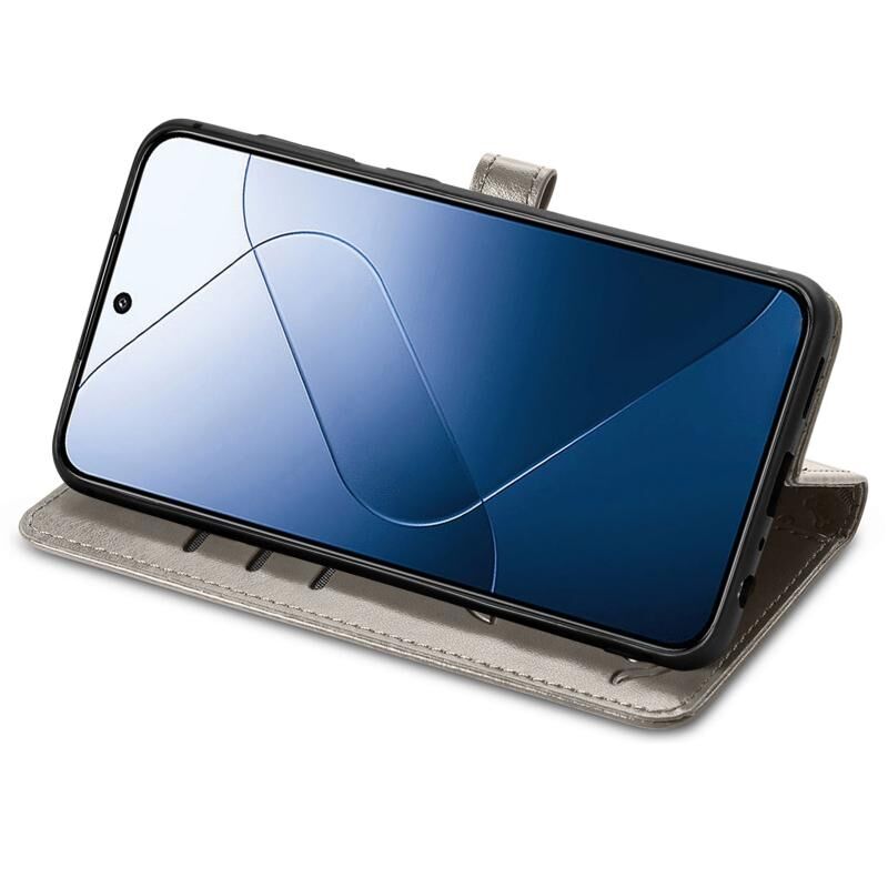 Θήκη τηλεφώνου δερμάτινη ανάγλυφη με σχέδια γάτας και σκύλου για Xiaomi 14 (Χρυσορόδινο)