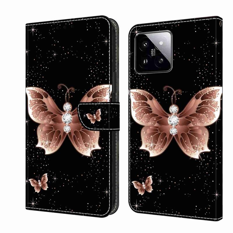 Θήκη κινητού τηλεφώνου από δέρμα, αντικραδασμική, προστατευτική 3D για Xiaomi 14 Crystal (Κατώτερο ροζ πεταλούδα)