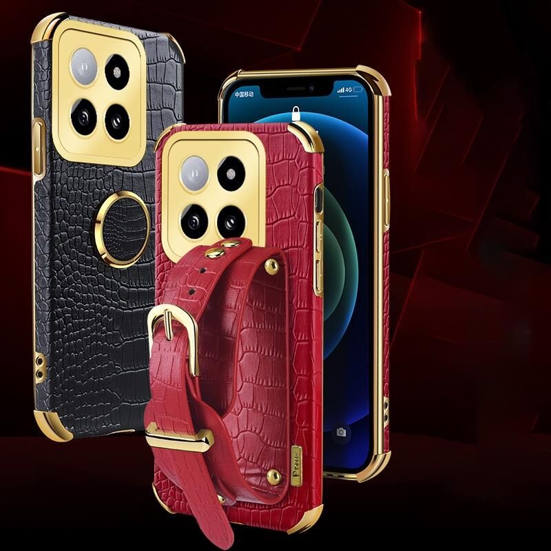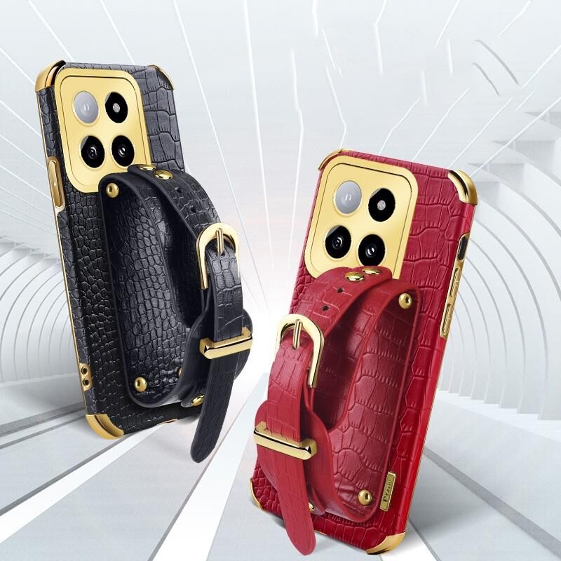 Θήκη τηλεφώνου Xiaomi 14 με επικάλυψη electroplated, δερμάτινη πλάτη από δέρμα κροκόδειλου (Λευκό)