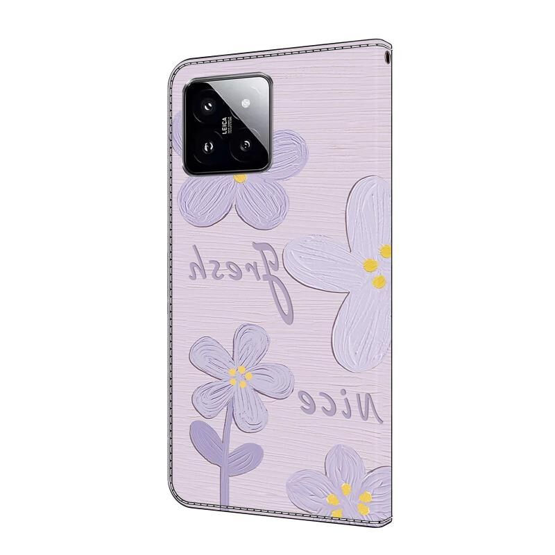 Θήκη τηλεφώνου Xiaomi 14 από φρέσκο ​​βαμμένο δέρμα (Μωβ λουλούδια ζωγραφικής με λάδι)