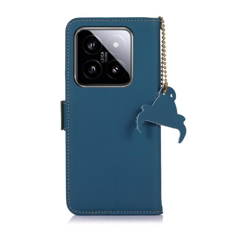 For Xiaomi 14 Genuine Leather Magnetic RFID Leather Phone Case(Blue)