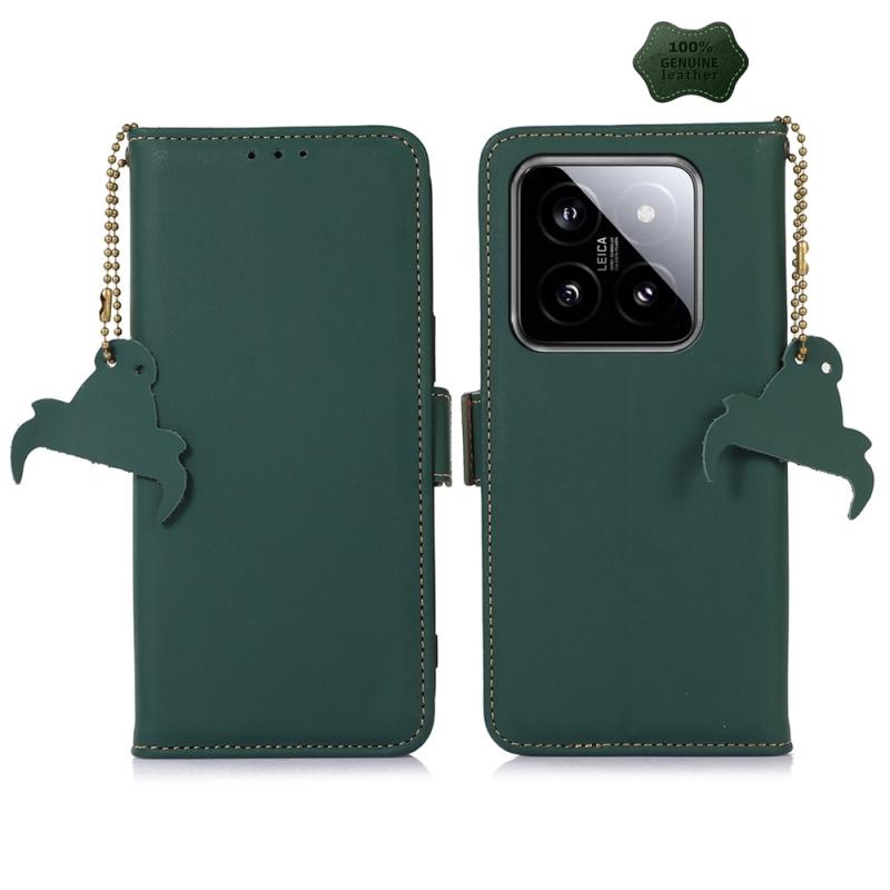 For Xiaomi 14 Genuine Leather Magnetic RFID Leather Phone Case(Green)