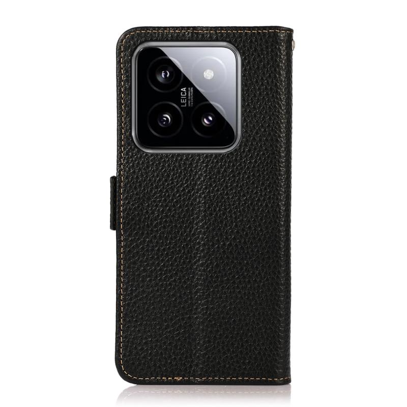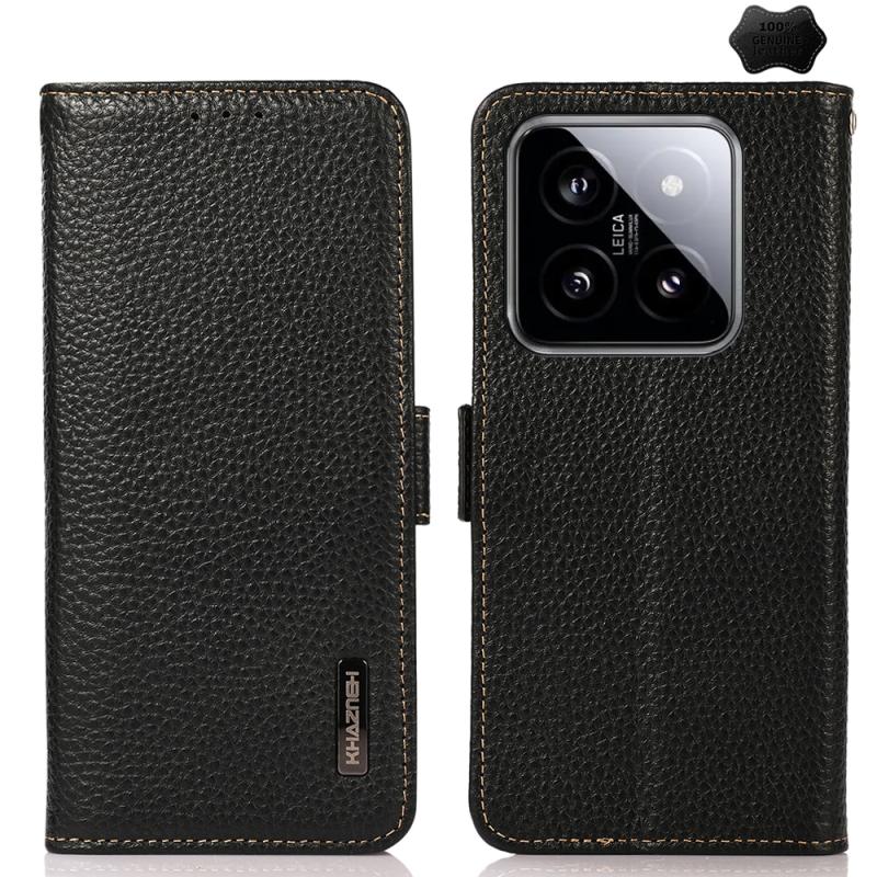 For Xiaomi 14 KHAZNEH Side-Magnetic Litchi Genuine Leather RFID Phone Case(Black)