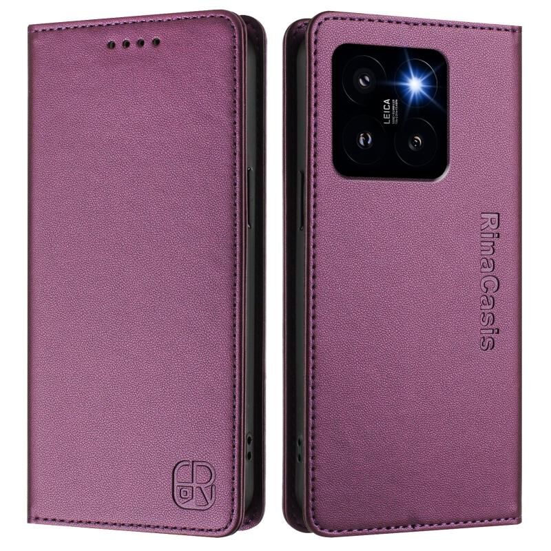 For Xiaomi 14 Pro 5G RC01 Dual-Folded Magnetic Suction RFID Leather Phone Case(Violet)