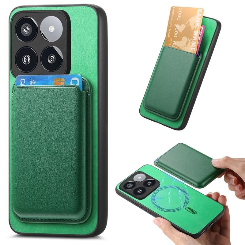 For Xiaomi 14 Pro 5G Retro Magsafe Card Bag PU Back Cover Phone Case(Green)