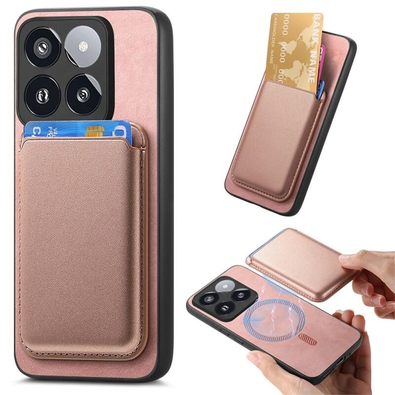 For Xiaomi 14 Pro 5G Retro Magsafe Card Bag PU Back Cover Phone Case(Pink)