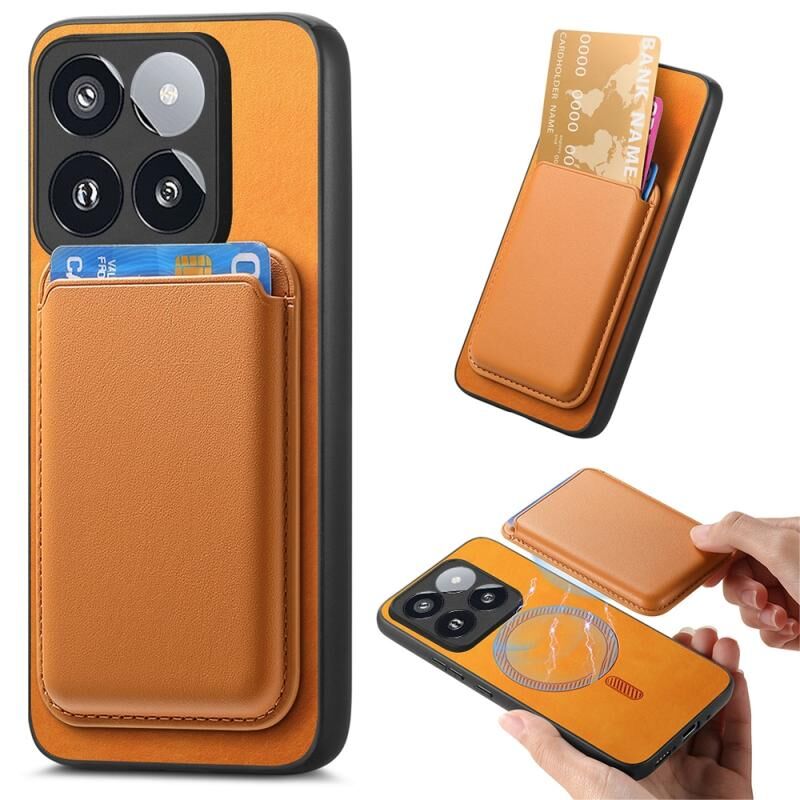 For Xiaomi 14 Pro 5G Retro Magsafe Card Bag PU Back Cover Phone Case(Yellow)