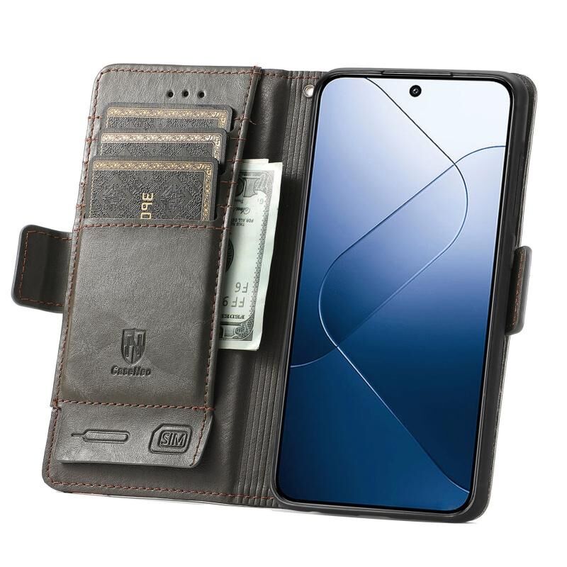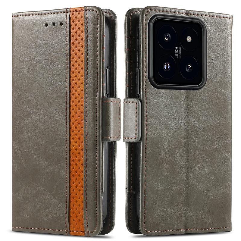 Για Xiaomi 14 Pro CaseNeo Splicing Διπλή μαγνητική πόρπη δερμάτινη θήκη τηλεφώνου (γκρι)