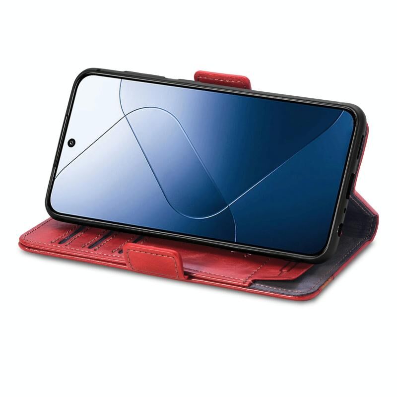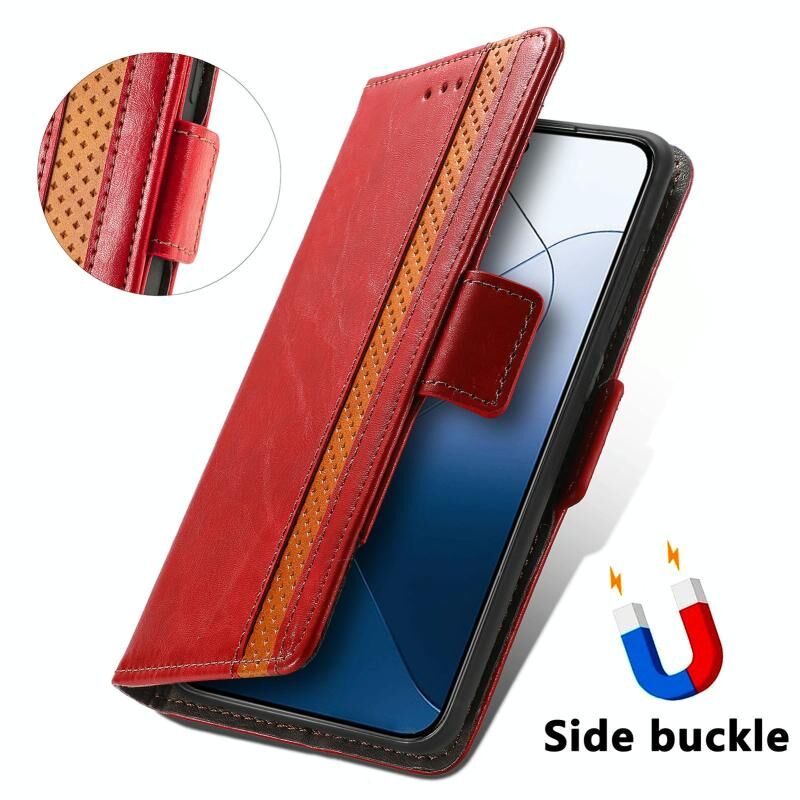 Για Xiaomi 14 Pro CaseNeo Splicing Διπλή μαγνητική πόρπη δερμάτινη θήκη τηλεφώνου (κόκκινο)