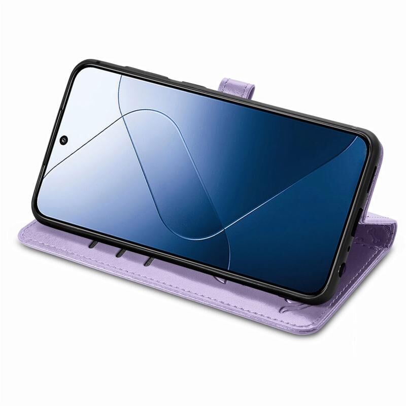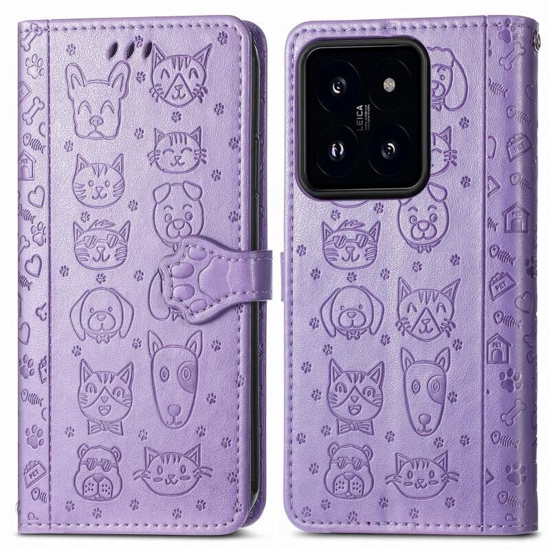 Θήκη τηλεφώνου από δέρμα με ανάγλυφο σχέδιο γάτας και σκύλου για Xiaomi 14 Pro (Μπλε)