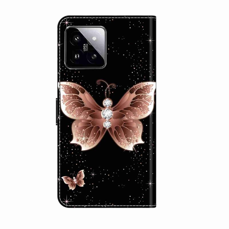 Θήκη προστασίας για Xiaomi 14 Pro Crystal 3D αντικραδασμική από δέρμα (Ροζ βάση με πεταλούδες)