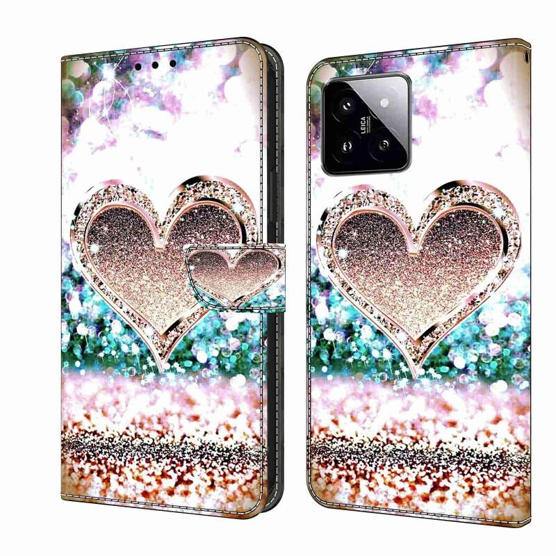 Θήκη προστασίας για Xiaomi 14 Pro Crystal 3D αντικραδασμική από δέρμα (Ροζ βάση με πεταλούδες)